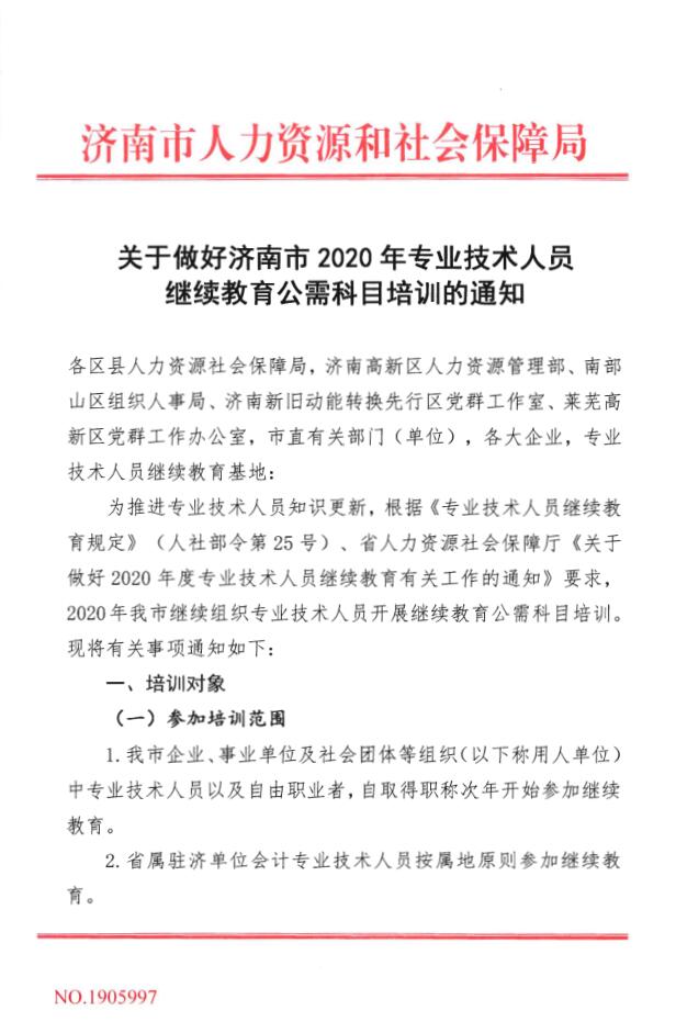 關于做好濟南市2020年專業技術人員繼續教育公需科目培訓的通知